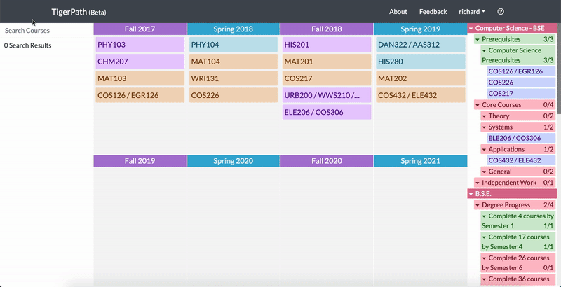 TigerPath helps Princeton University students plan out their four-year course schedules.
